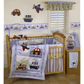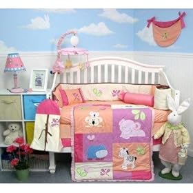 NoJo Jungle Tales 6 Piece Crib SetProduct Description: This 6-piece set includes a Quilt, Bumper, Fitted Crib Sheet, Dust Ruffle, Valance and Diaper Stacker. All items are machine washable for easy care.