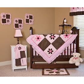 We use a natural color wood crib rather than a dark one like mahogany b/c of the all the brown in the set anyway...gets to be a bit clashy.