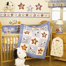 Bedtime Originals Champ Snoopy 4-Piece Baby Crib Bedding Set, BlueProduct Description: Set includes Quilt, Bumper, Fitted Sheet and Dust Ruffle.