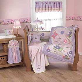 This crib set is adorable.I wanted something pink and purple and different from all the usual KidsLine sets sold in Babies R Us, etc.I wanted a set with a detailed comforter to hang over the changing table. (The only use for infant comforters since you never should put them in the bed with a baby - that's what sleep sacks are for!).As we change her diaper, we talk to her about the lady bugs and turtles and butterfly on the quilt.I also wanted a bumper that had something interesting for the baby to look at.The only problem I had with the bumper was that a couple of the ties ripped off.It may not have been a manufacturing problem though as my daughter had a bad habit of standing on the bumper to call for us, which smashed the bumper down and put a strain on the ties, which resulted in several of them ripping off.The sheets are very feminine and the valance is nice as well.